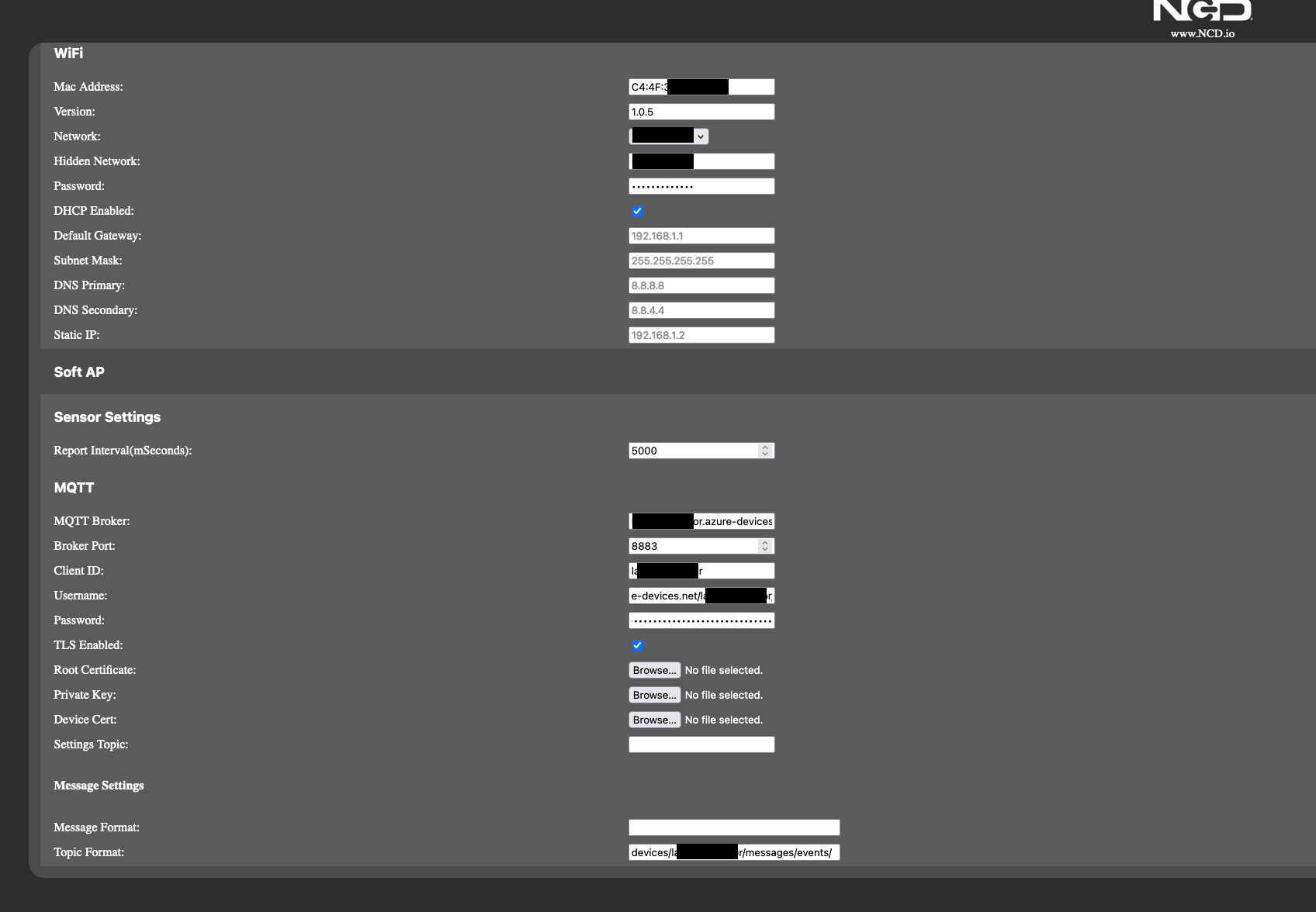 I created the device, generated a certs for a ca, then applied them and still get the red flasshing light. I also took the same device certs and used a python script to send a test message and that worked. I feel at this point i just dont have the right combo in the sensor’s settings.