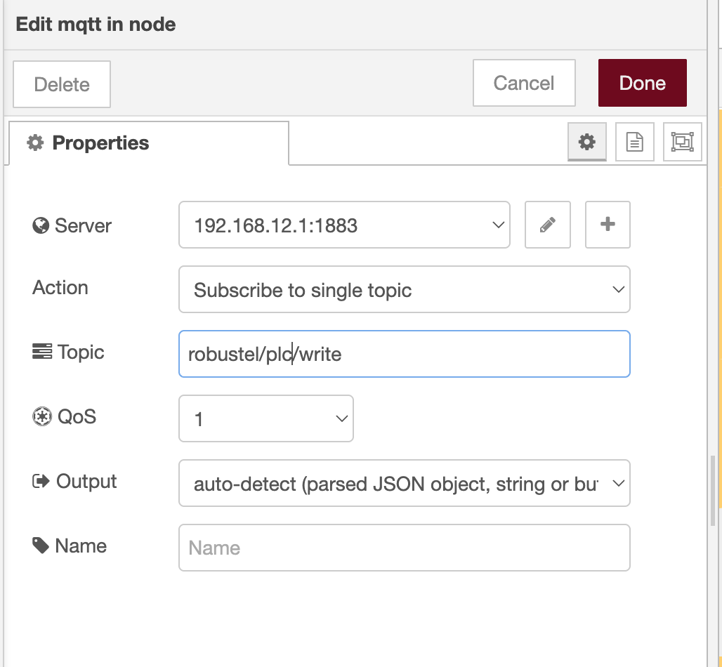 Note: This is an article using AWS, but we explain how to configure the MQTT node parameters.
