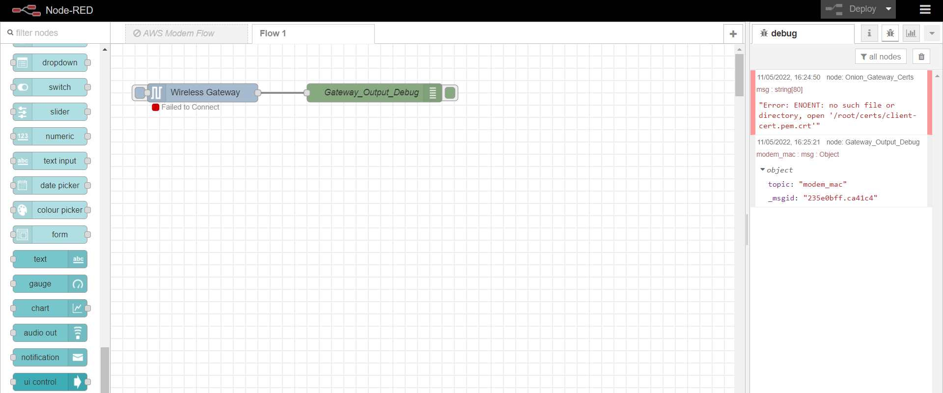 I’m trying to connect with IoT Edge Computer to a Industrial Wireless Thermocouple High Temperature Sensor. I have the IoT connected to my WiFi and this is how my node-red flow looks like: