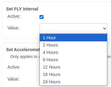 Regarding the FLY interval, you can use a Wireless Device node to configure sensor parameters. There, you will see the Set FLY Interval option. You can enable the checkbox and set the desired interval.