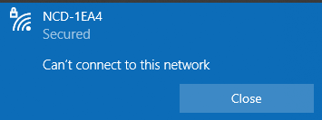 Unfortunately, I still “Can’t connect to this network”.