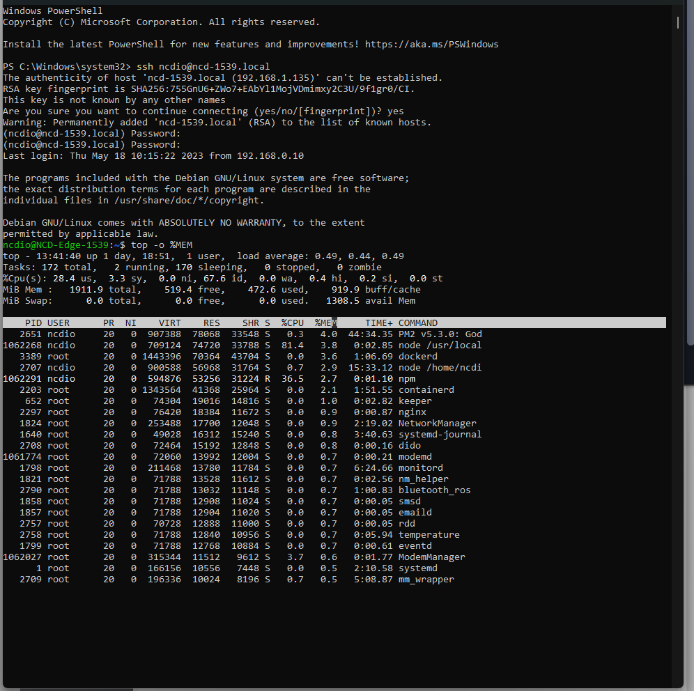 This will tell me what is using the memory on the gateway.
