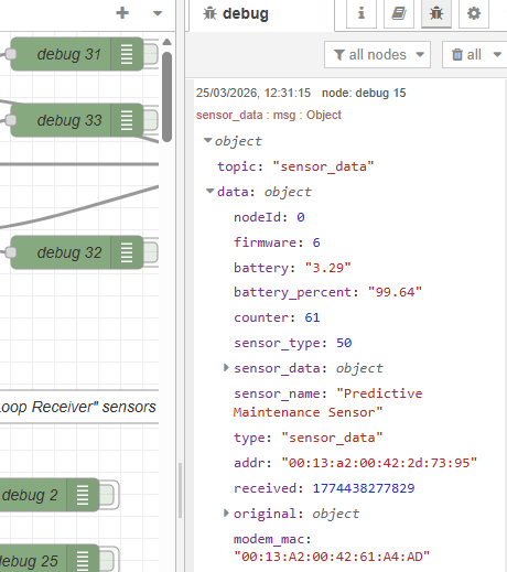 - I am monitoring the debug node associated with this sensor (debug 26)