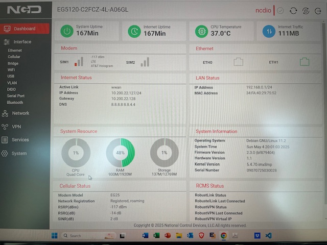 2- The gateway does not connect to internet via cerllular SIM card. The SIM card is active, and we have good signal; the status page of SIM card shows connection to the network so the APN is setup properly. We have followed of the Cellular and WWAN setup instructions and still are not connecting to the cellular service. FYI, the gateway is configured as an Access point. The WWAN connection ETH0 show to be disconnected (not sure why). The Robustal Manual says that for cellular connection the Gateway has to be in Client mode?!