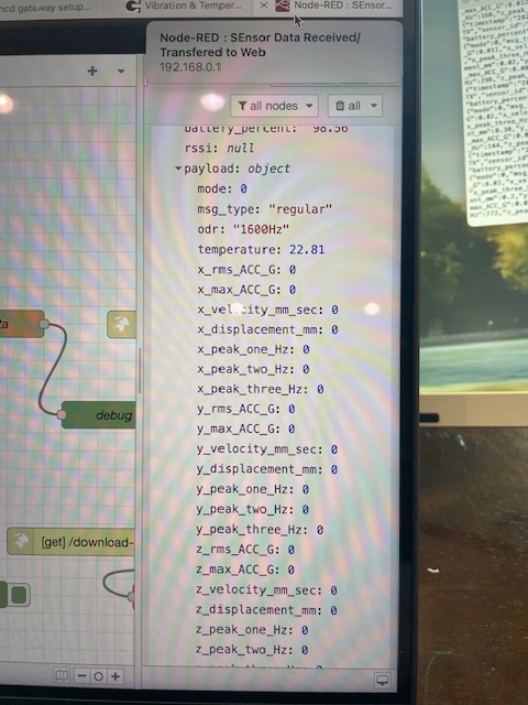If you’re seeing zero values, it’s likely because the vibration level is below the sensor’s default deadband threshold of 20 mg. Any vibration below this threshold is considered noise and reported as zero.
