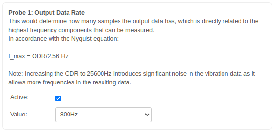 The file contains 800MHZ has the old data as well as new. Please refer to the latest data, located toward bottom of the file. There you will see that the old sensor has been set to 1600hz, similar to the new one.